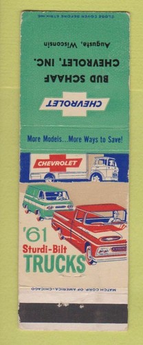 Matchbook Cover 1961 Chevrolet Trucks Bud Schaaf Augusta Wi Wear Ebay